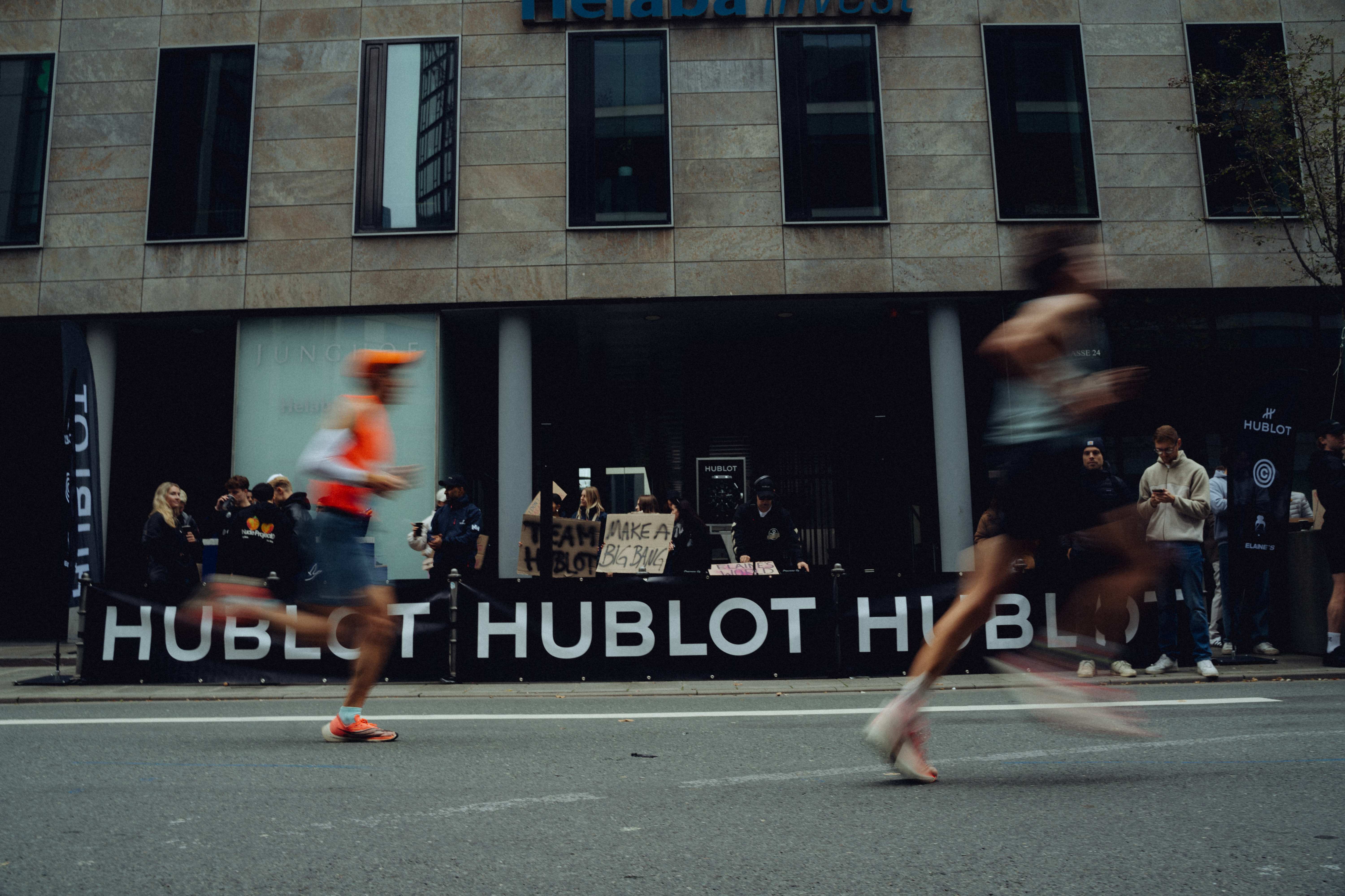 Complete marathon experience. Race-side cheering zone, live energy, after party for finishers. We designed both the breaking point and the celebration together with Hublot.