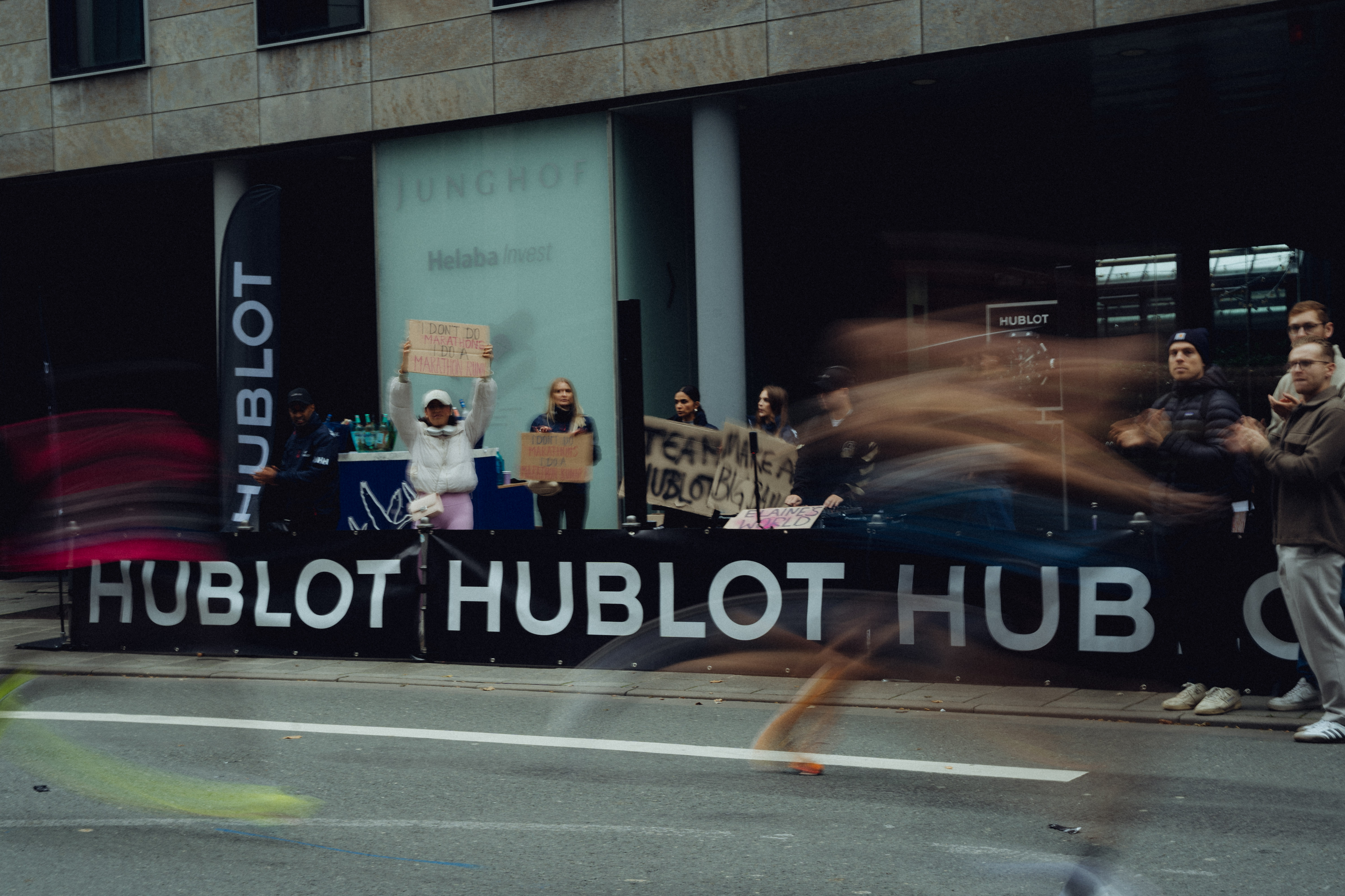 Complete marathon experience. Race-side cheering zone, live energy, after party for finishers. We designed both the breaking point and the celebration together with Hublot.